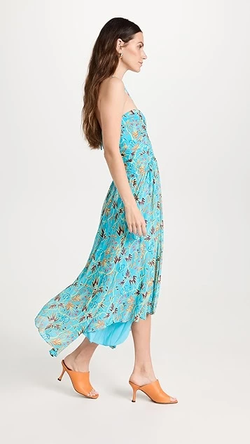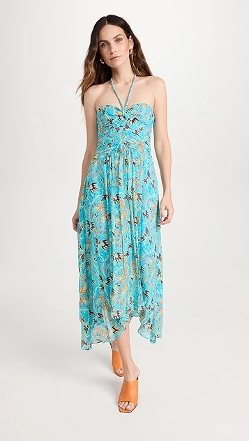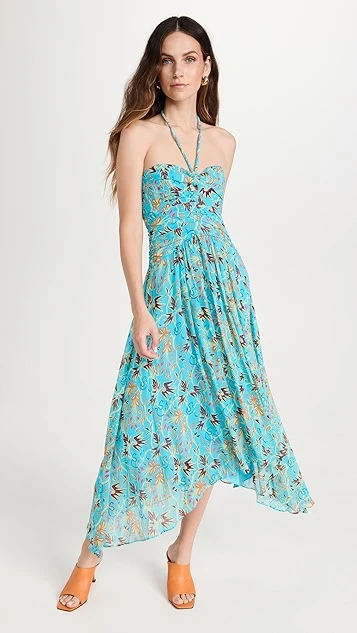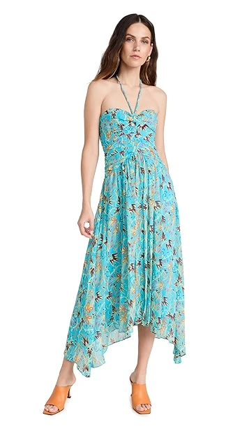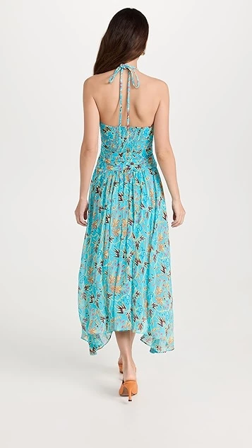 - Halter neckline and ruched bodice