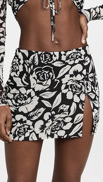 A sleek AFRM miniskirt with two-tone floral patterning, finished with a split at the hem. Go with the label’s coordinating top, and complete your outfit with a pair of heeled sandals.