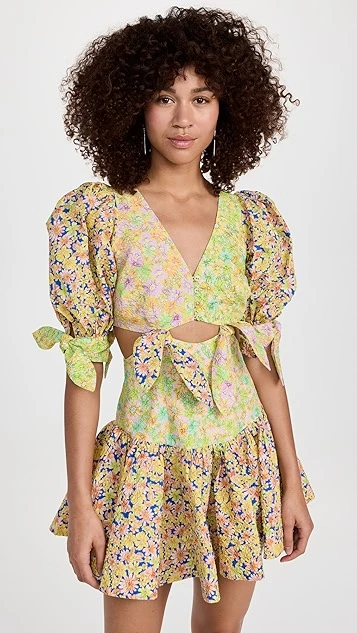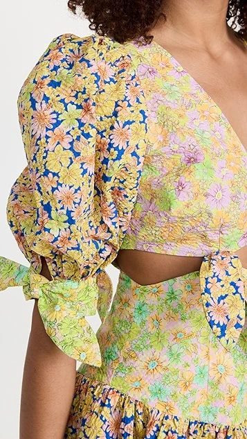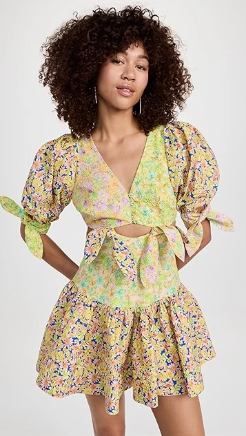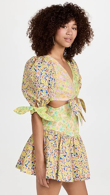 A texture-rich piece with style to spare, this Alemais mini dress features a unique arrangement of ties and multicolor floral prints. Give this silhouette the spotlight by pairing it with understated flat sandals.