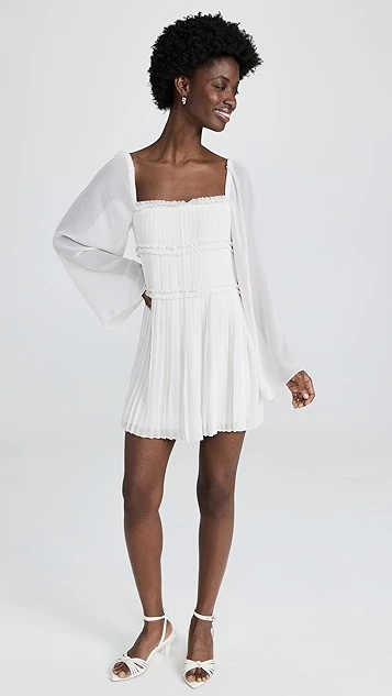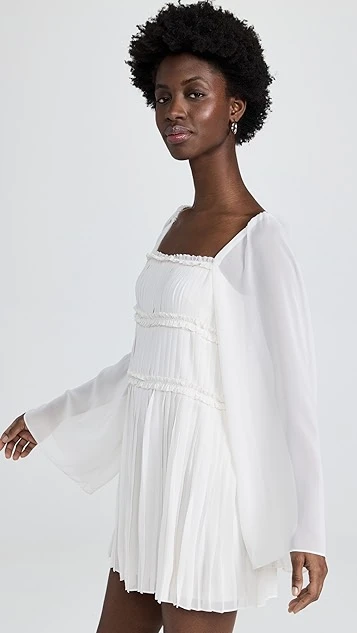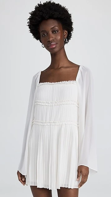 - Allover pleating and ruffle edges