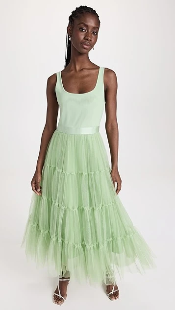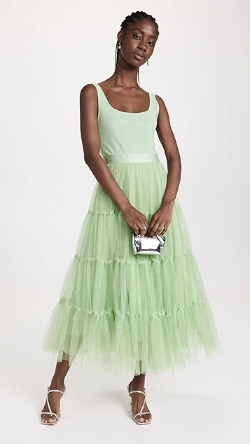 - Tiered skirt and structured hem