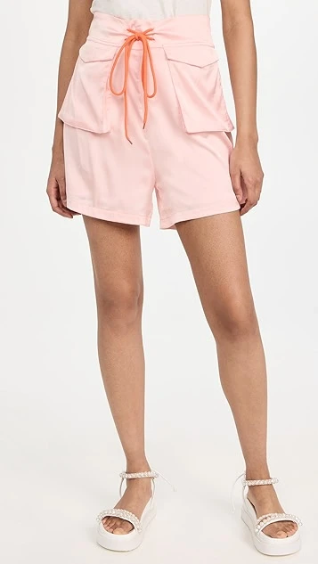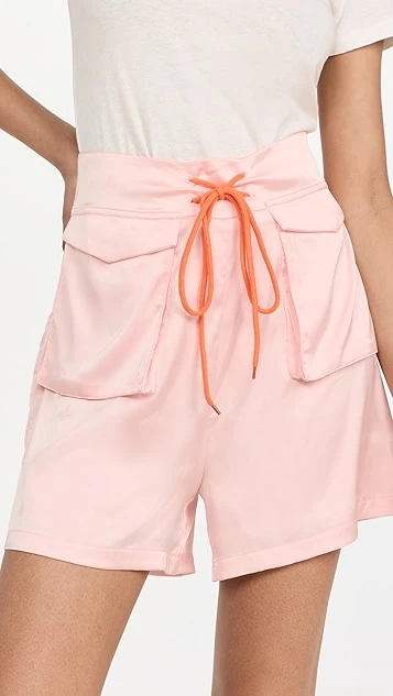 A striking sunny-day option, these Allina Liu shorts features a high rise, silky pink fabric, and flap front pockets. Keep your look coordinated with the label’s matching top.