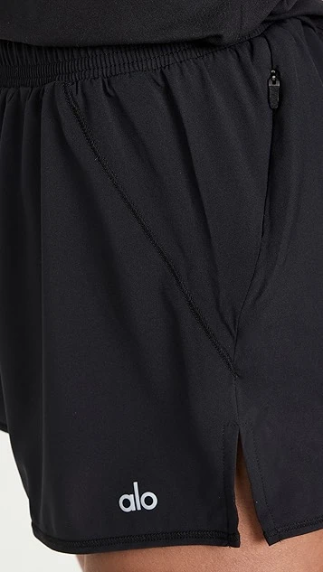 A lightweight pair of Alo Yoga shorts for your workout wardrobe, crafted from monochrome fabric and accented with subtle branding.