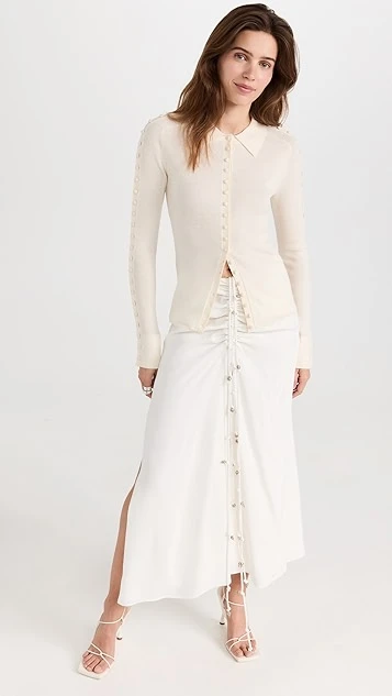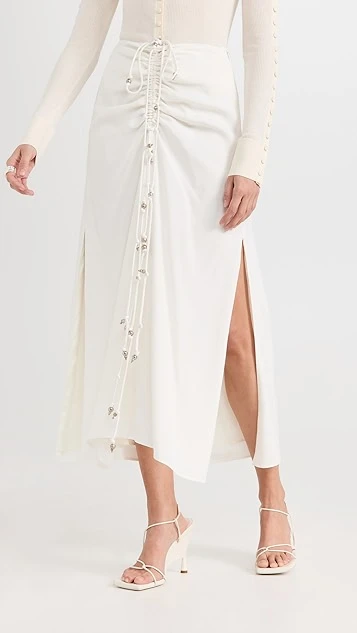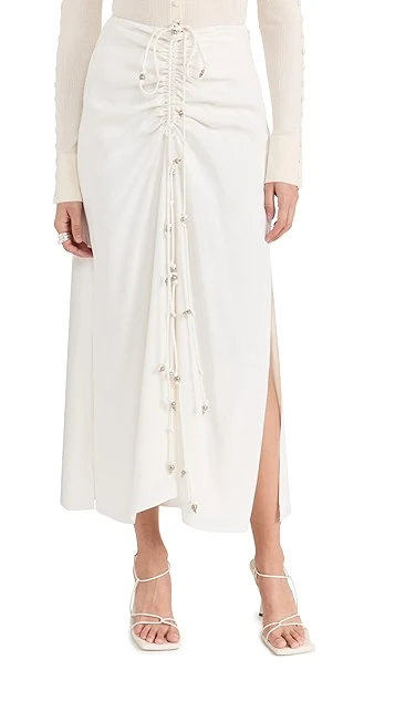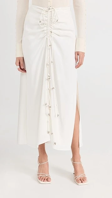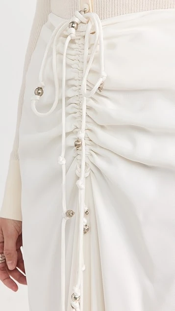 - Drawstring ties with silver-tone embellishments