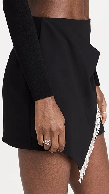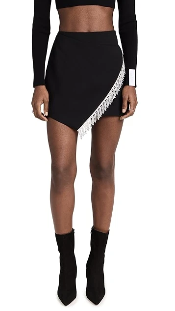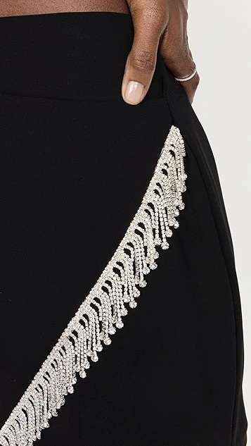 - Fixed skirt overlay with asymmetrical crystal fringe