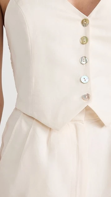 Designed to resemble a combination of a vest and trouser shorts, this white Amanda Uprichard romper is a good piece to have on hand for days when you want something polished that isn’t a dress.