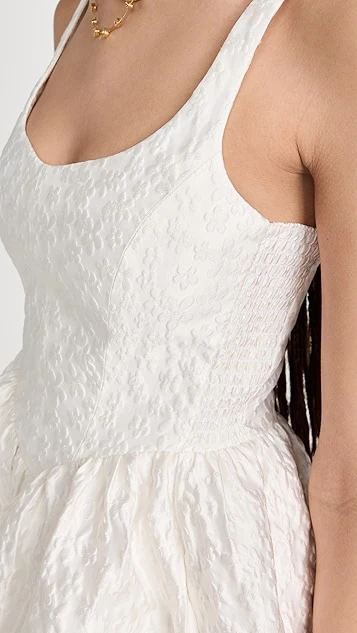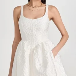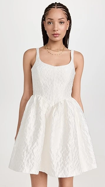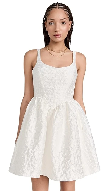 This sophisticated Amanda Uprichard white mini dress is crafted from richly textured cloque and features a classic fit and flare silhouette. Gold-tone earrings and tonal heeled sandals will suit this piece nicely.