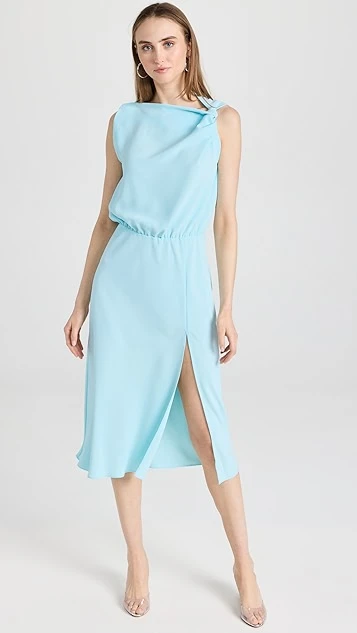 A shoulder twist and a side slit lend a subtle touch of asymmetry to this pink Amanda Uprichard dress. Complete your special-occasion look with strappy heels and a minaudiere.