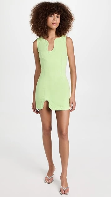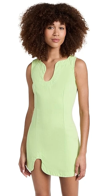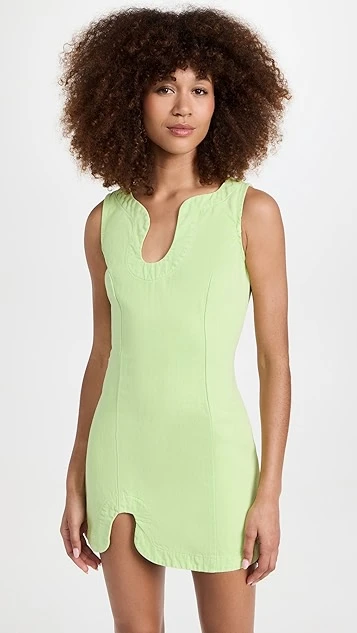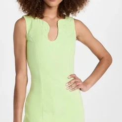 A night-out classic with a fresh update, this lightly colored Amanda Uprichard sheath dress features intriguing curved notches at the neckline and hem. To round out your outfit, add tonal heeled sandals.