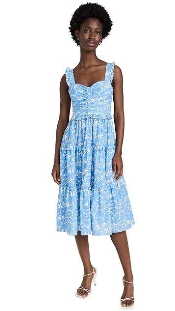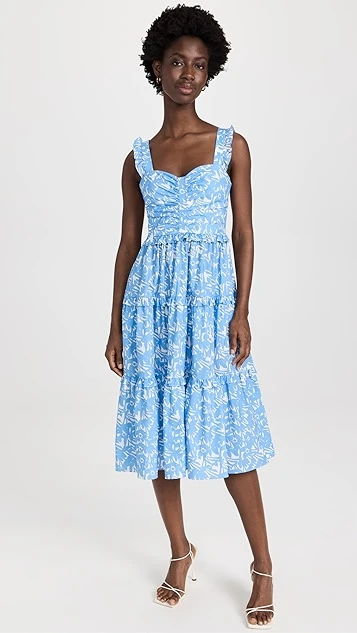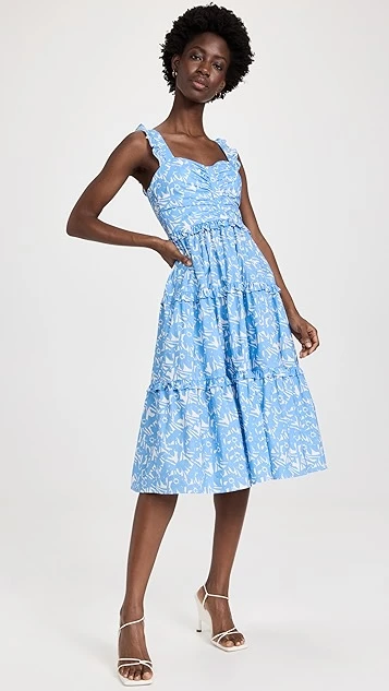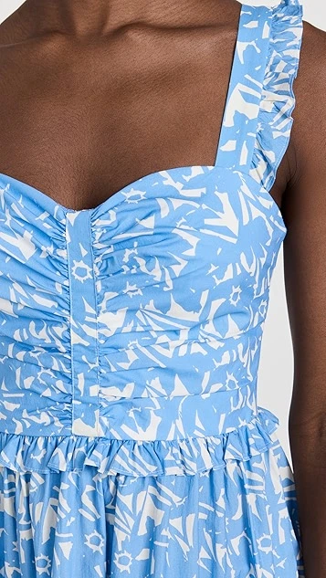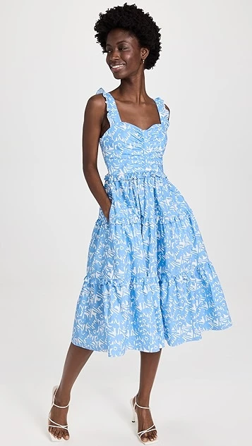 - Ruffles at shoulder straps and tiered seams
