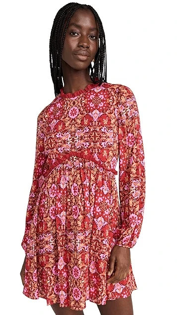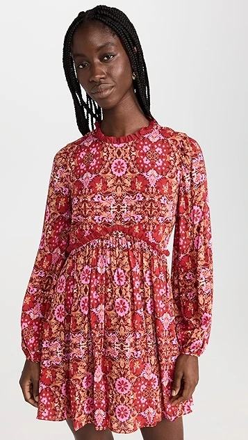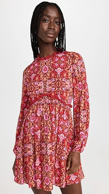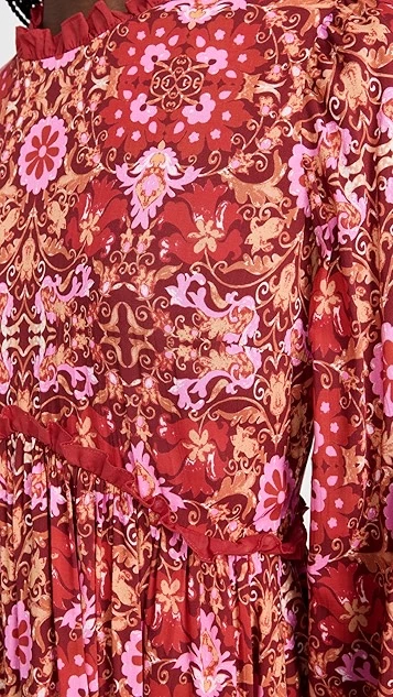 - Floral print and ruffle trim