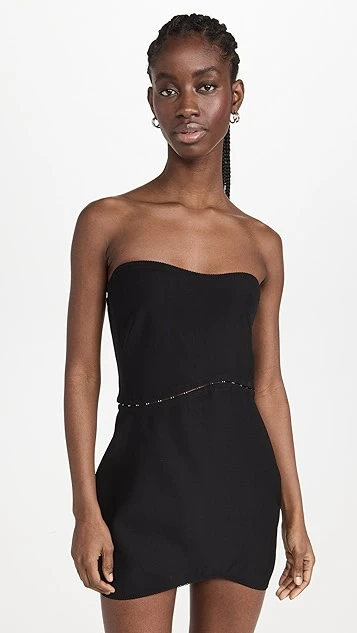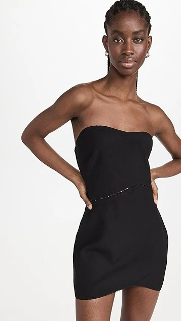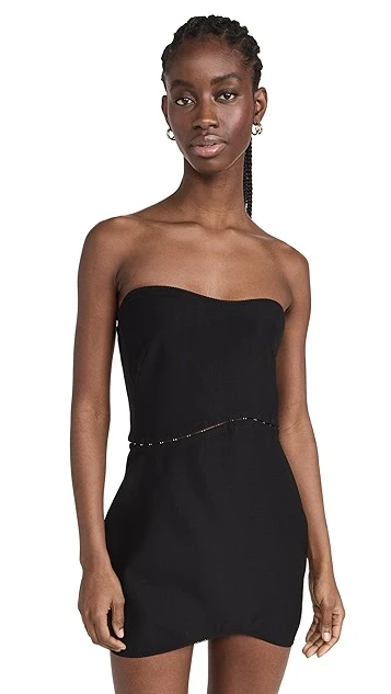 - Asymmetrical strapless neckline