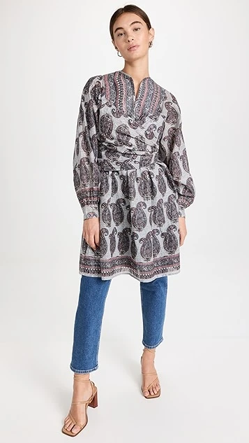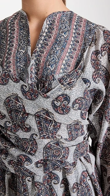 - Self-tie belt at waist