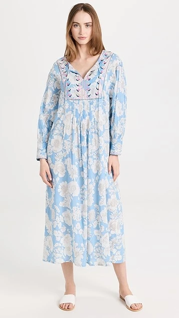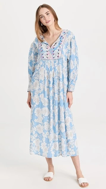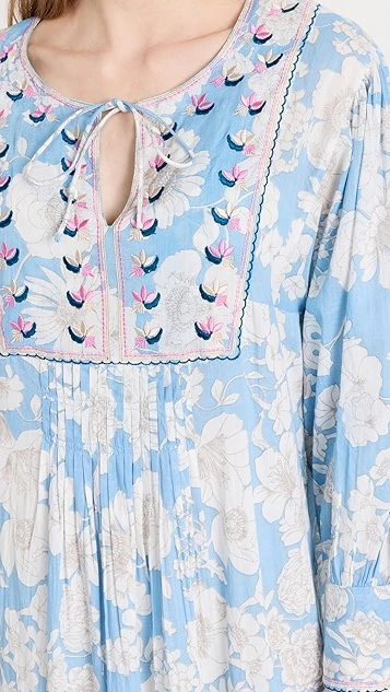 - Pleated empire waist and gathered skirt