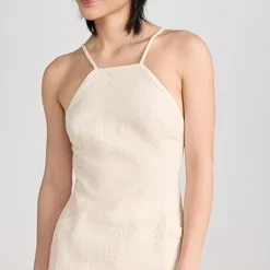 - High neckline and adjustable shoulder straps