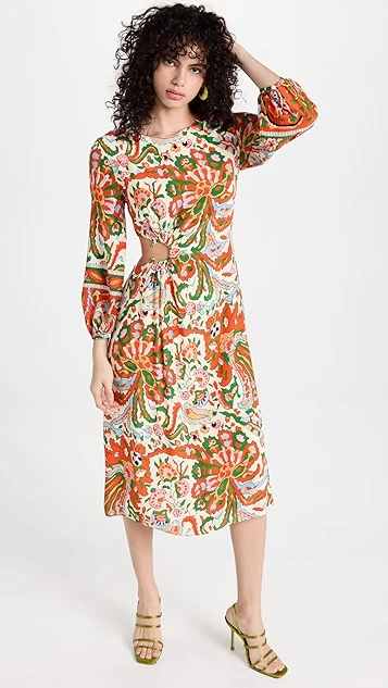 - Cutout and gold-tone metal ring detail at side