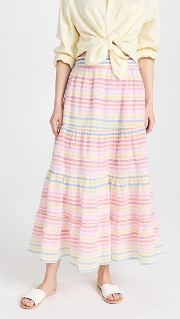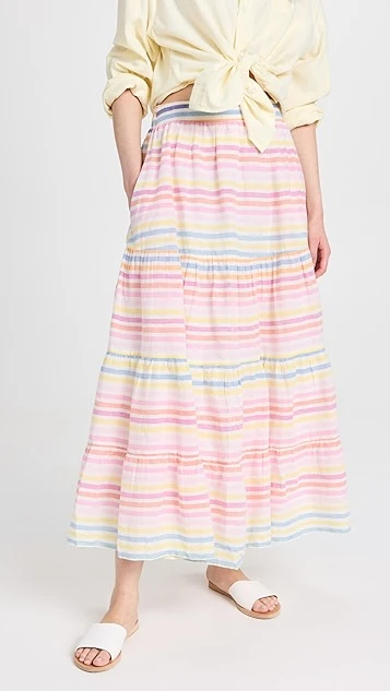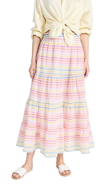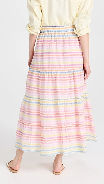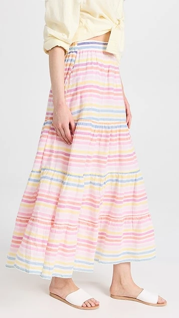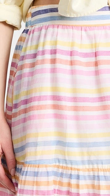 A multitude of pastel stripes detail this swingy and voluminous Banjanan skirt, a spring-ready piece in pure, lightweight cotton.