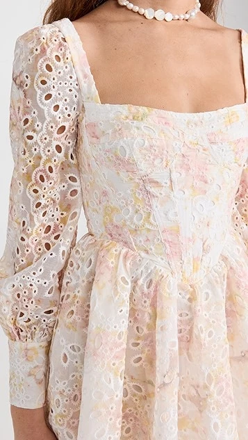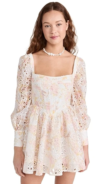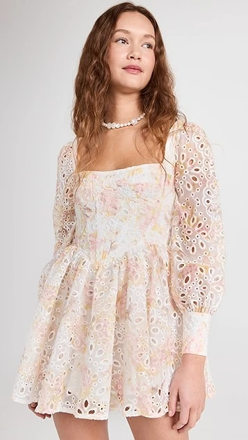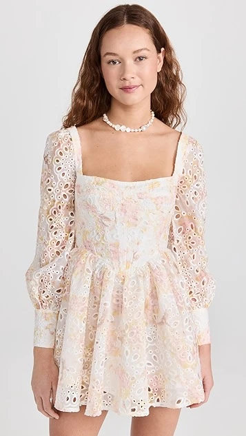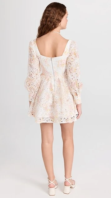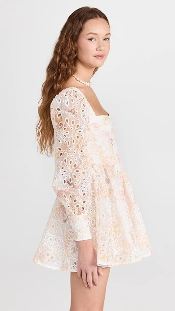 Occasion-worthy polish is on offer with this sweet BARDOT mini dress, which features romantic proportions, intricate eyelet patterning, and a square neckline.