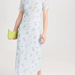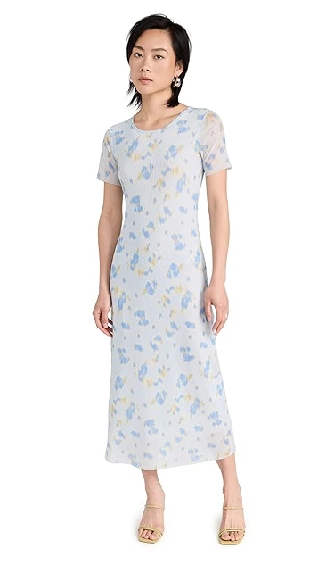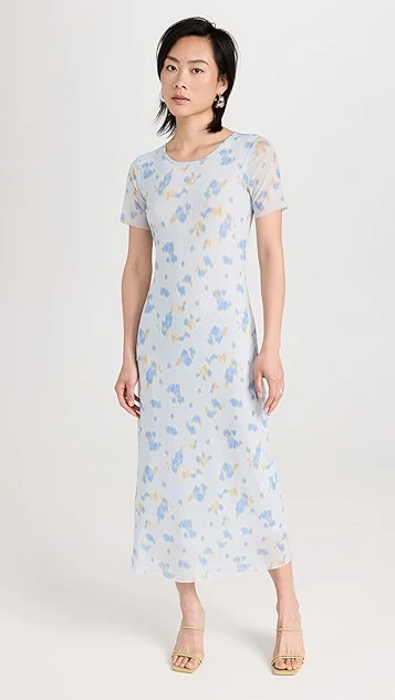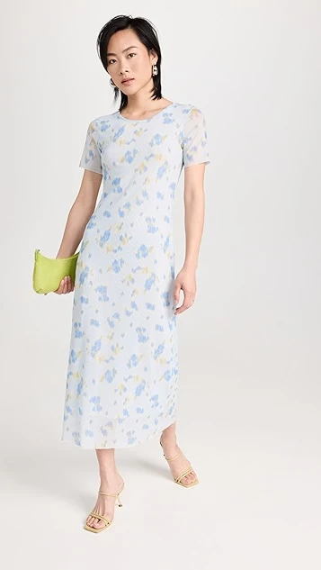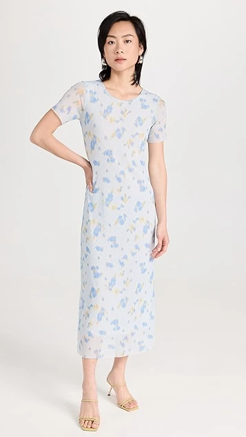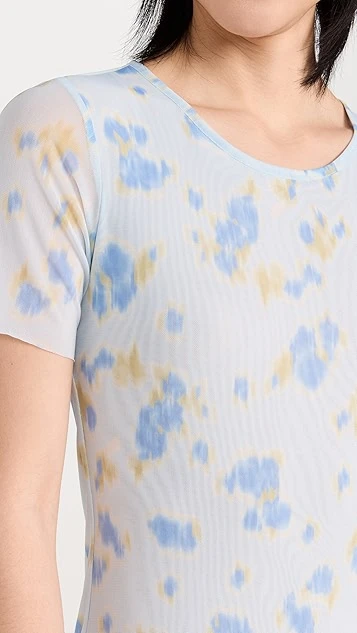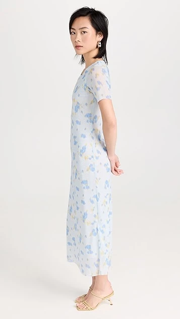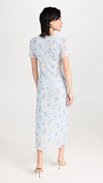A unique BAUM UND PFERDGARTEN sheath dress with day-to-night potential, crafted from lightweight mesh fabric and detailed with a blurred floral print.