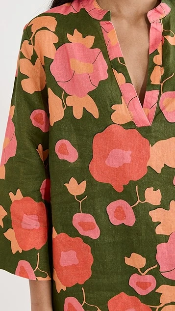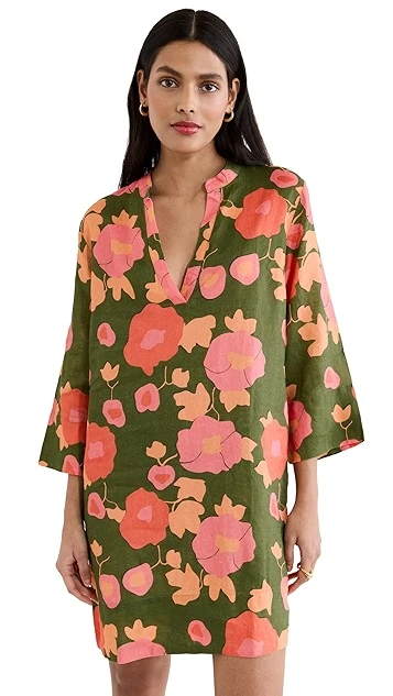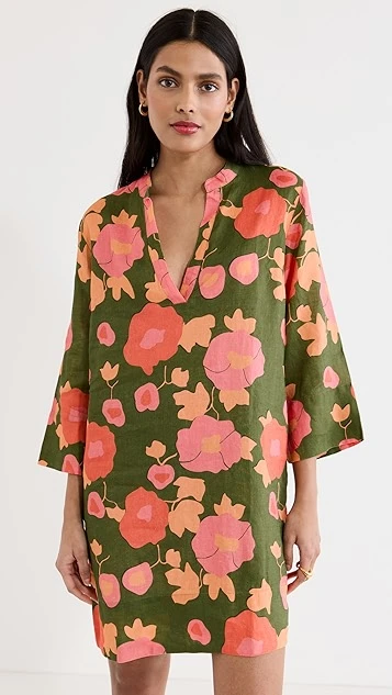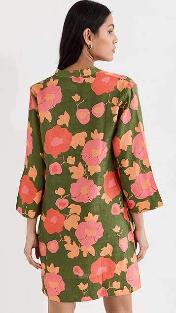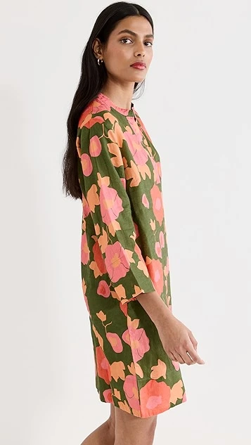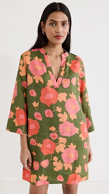 Composed entirely of lightweight linen, this Birds of Paradis mini dress features a relaxed shift silhouette and a vintage-inspired floral print. If you’re in the mood to accessorize, add a subtle necklace at the split neckline.