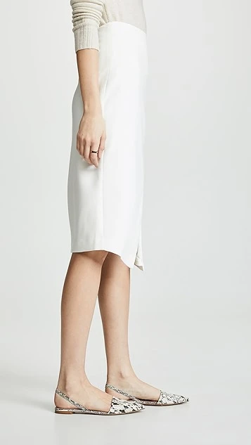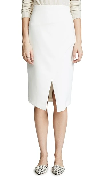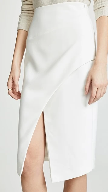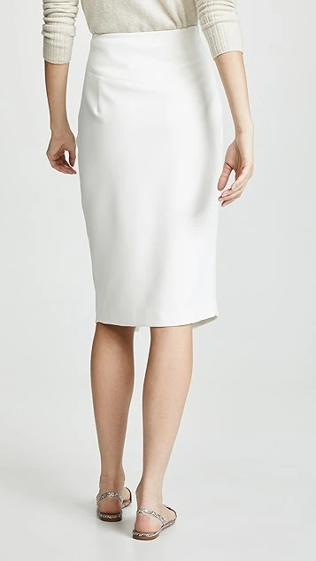 This polished Black Halo pencil skirt improves on the classic silhouette thanks to a faux wrap front that allows for easier movement.