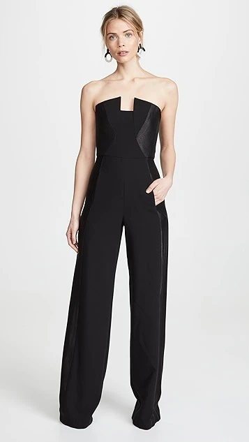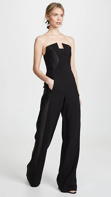 Sharply tailored and finished with glamorous, metallic side panels, this strapless Black Halo jumpsuit is ready to go toe-to-toe against your best cocktail dresses. Pair it with minimalist pumps to really let the style stand out.