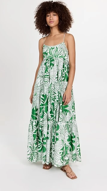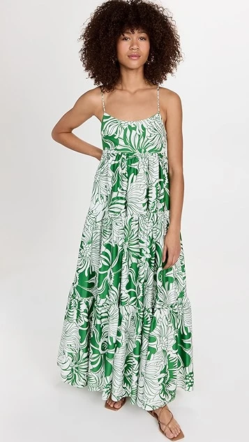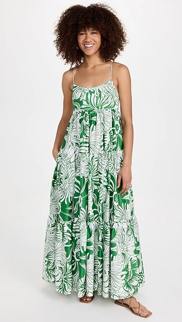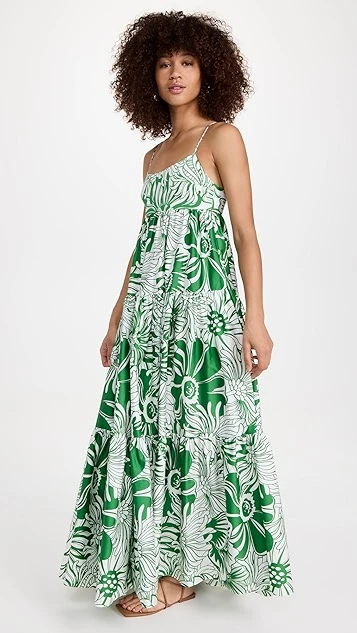 - Gathered empire waist and tiered skirt seams