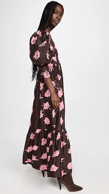 - Gathered empire waist and ruffle hem