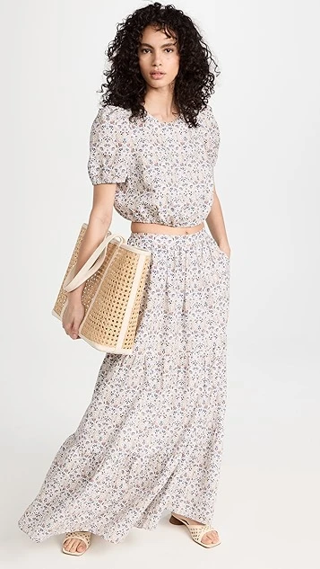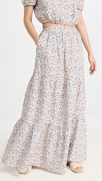 Comfortable volume and summery style is the story with this CAMI NYC maxi skirt, which is crafted from a lightweight blend of cotton and linen and accented with vintage-inspired patterning.