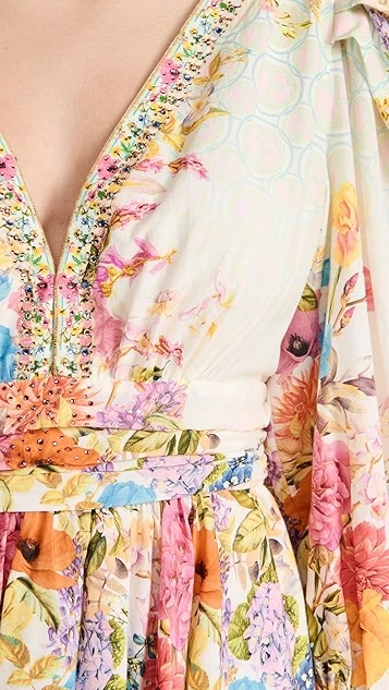 - Floral print with crystal embellishments