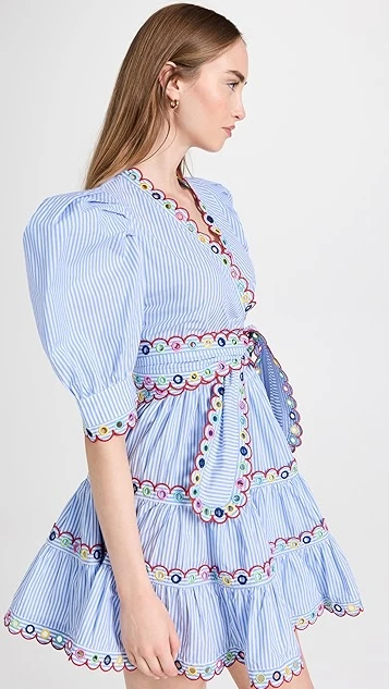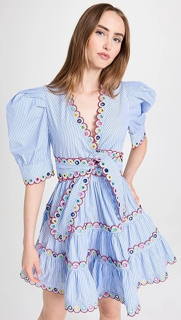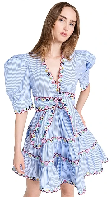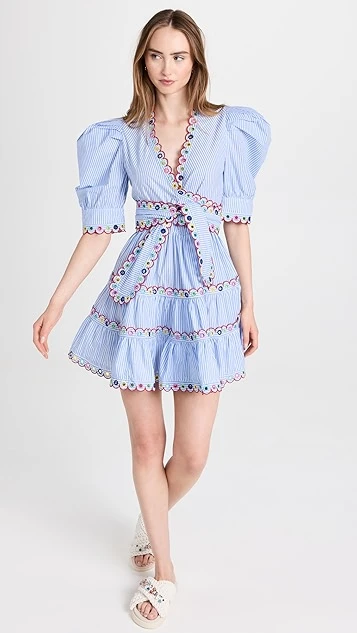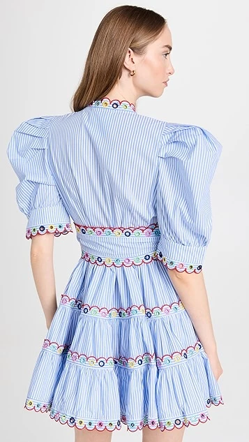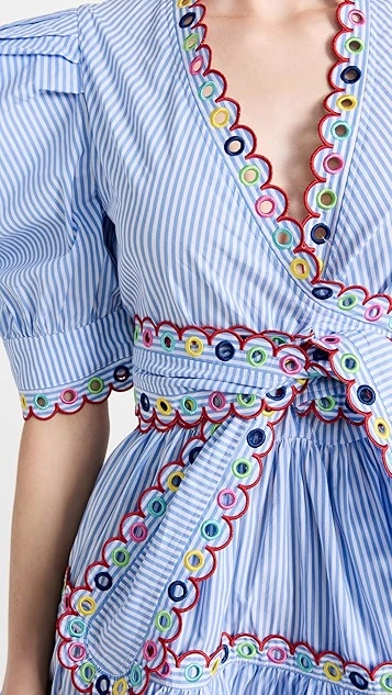 With exaggerated proportions and multicolor embroidery throughout the silhouette, this striped CeliaB dress is sure to make an impression. Go with simple hoop earrings and sandals to give this piece the spotlight it deserves.