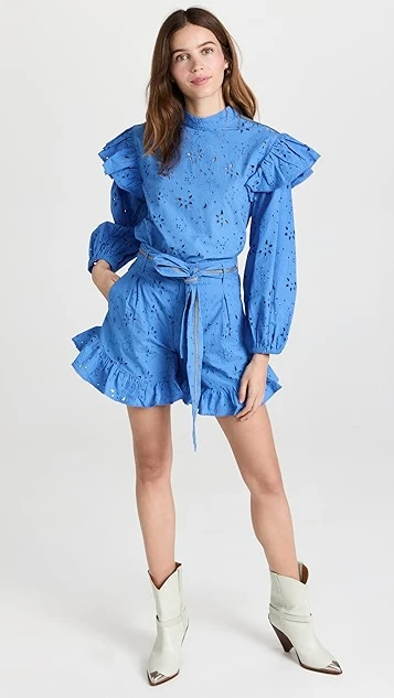 - Ruffle cuffs with picot trim