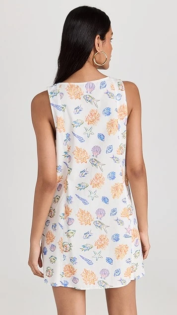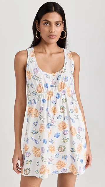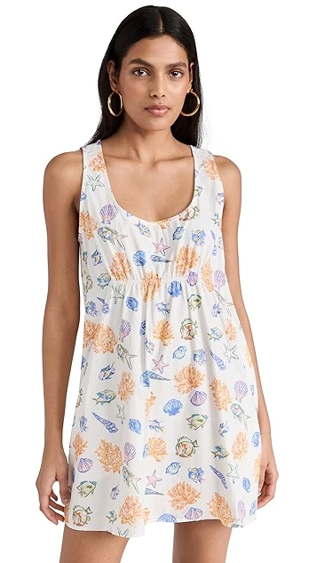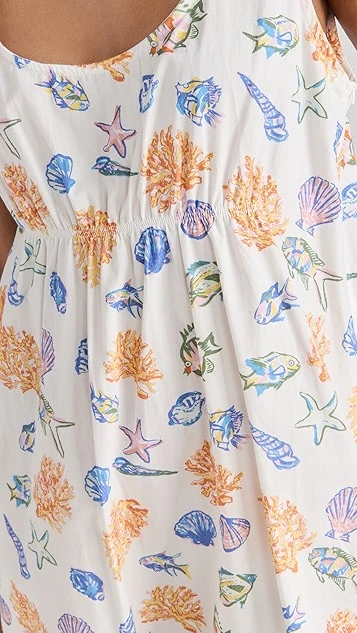 Make the most of your next sunny day in this charming Ciao Lucia white dress, which is detailed with a colorful seashell print and accented with a touch of gathering below the bodice.