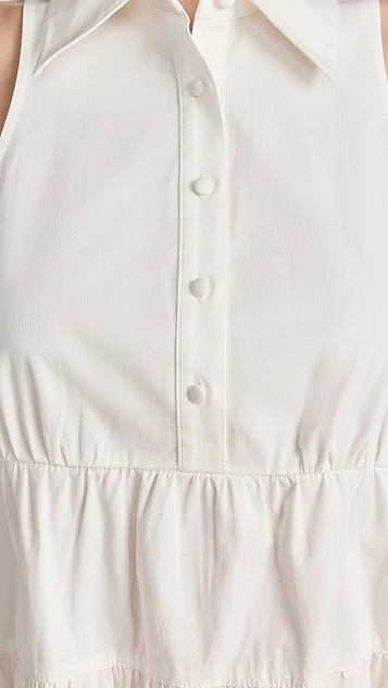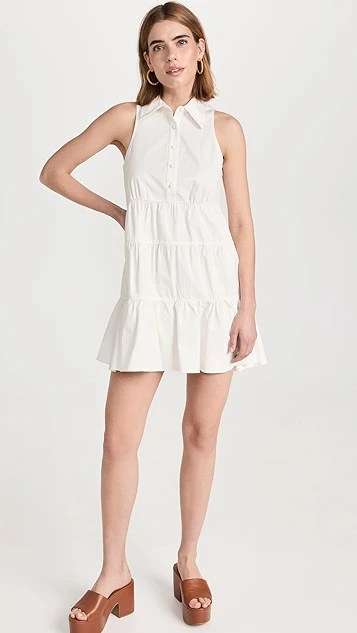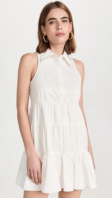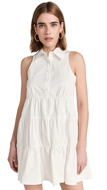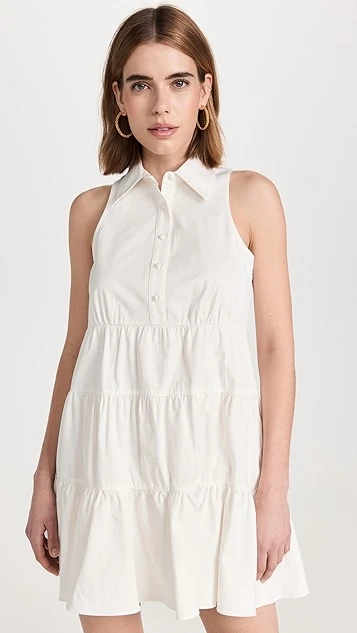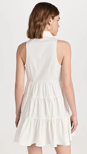 Crisp cotton twill with a touch of stretch composes this pretty Cinq a Sept white dress. Complement this shift silhouette with a pair of flat sandals, and accessorize with gold tone earrings.