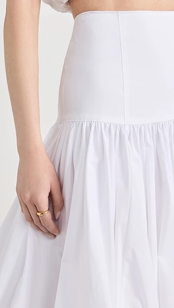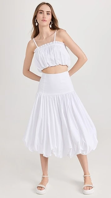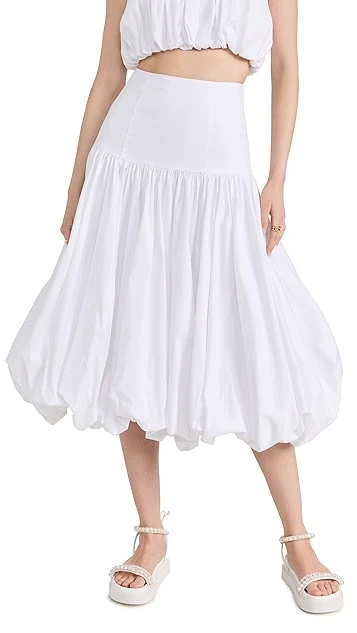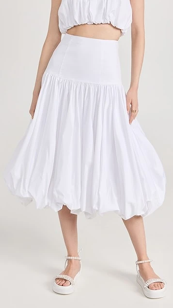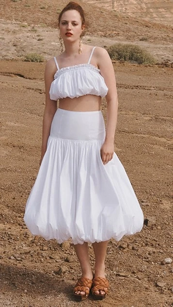 - Gathered silhouette and bubble hem