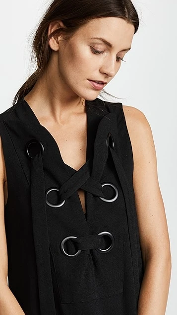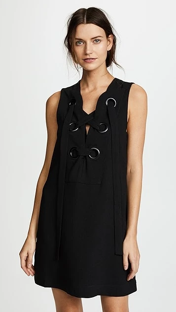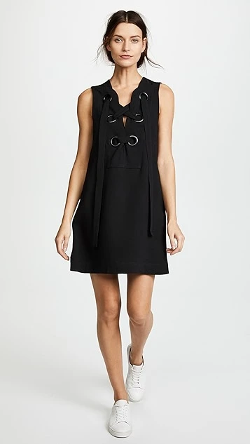 An ENGLISH FACTORY shift dress with charming ties and oversized eyelets at the bib.