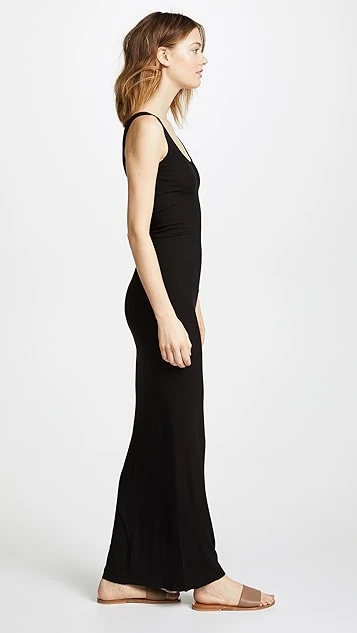 A figure-hugging Enza Costa maxi dress, rendered in versatile ribbed jersey. The raw hem adds an unfinished touch.