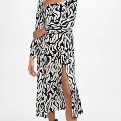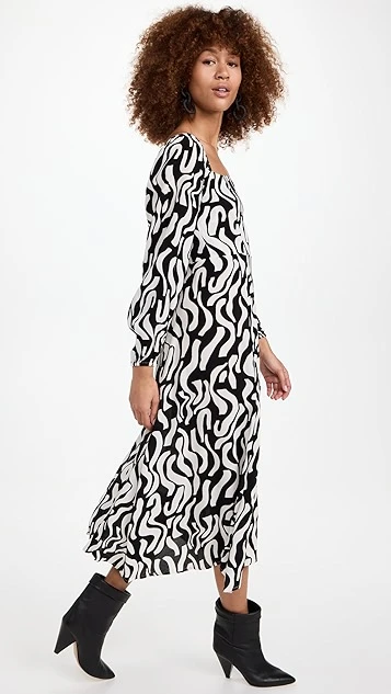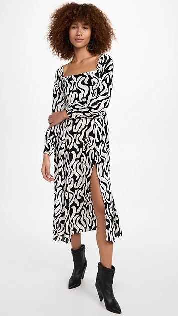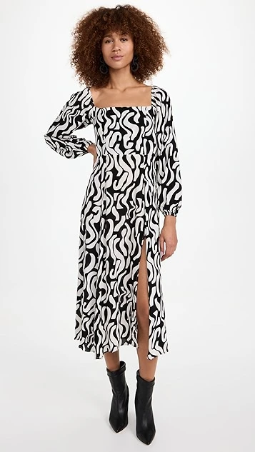 Go from day to night with just a simple change of shoes in this FAITHFULL THE BRAND midi dress, which sports a curving two-tone pattern and a deep front slit for a more relaxed fit.