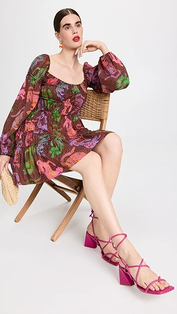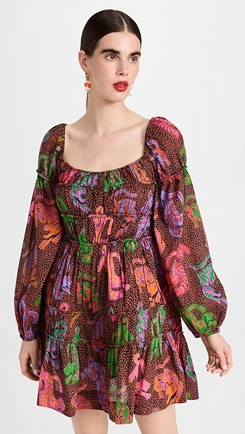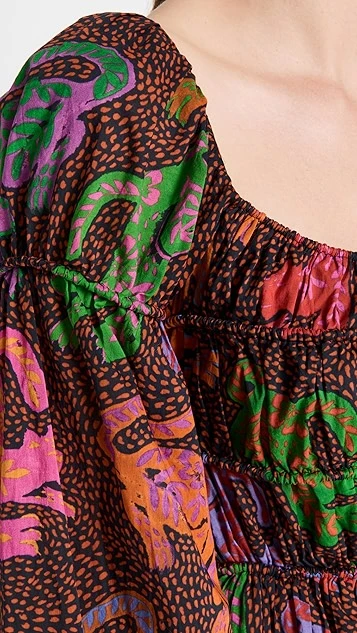 Multicolor leopard and painterly dots intermingle harmoniously across this cotton FARM Rio dress. A romantic look, which comes via a precisely tiered silhouette and a square neckline, creates charming contrast with the tropical vibe of the print.