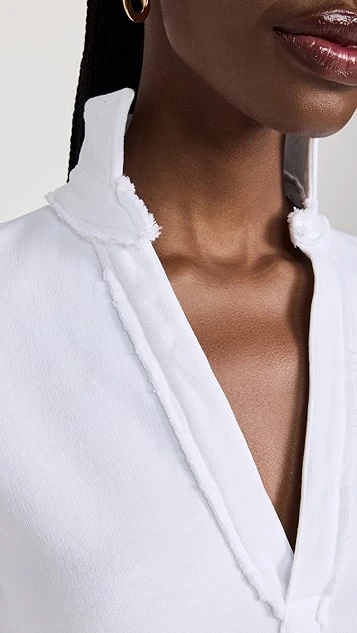 - Collared V neckline