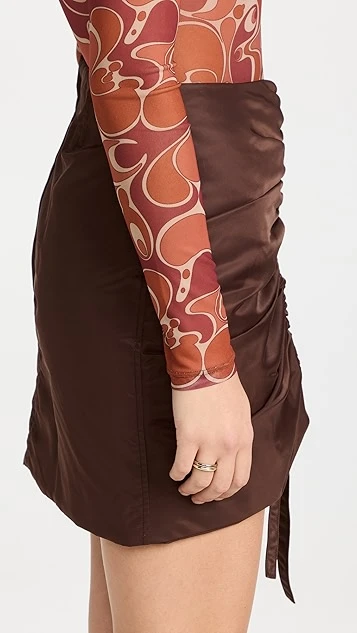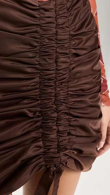 - Ruched drawstring at front with tie hem