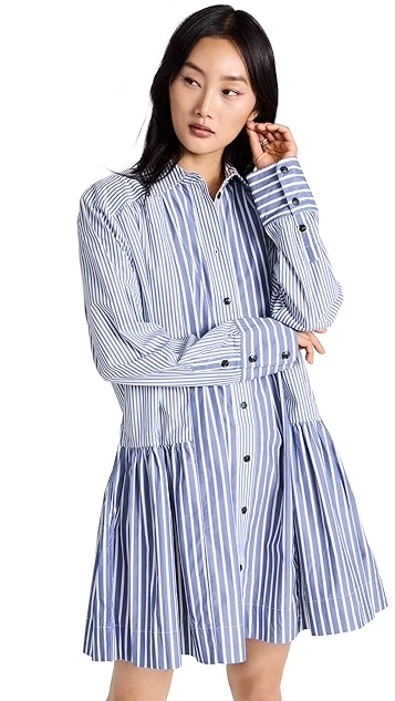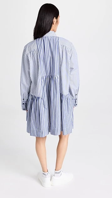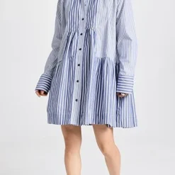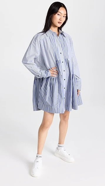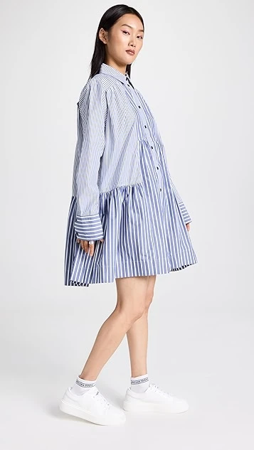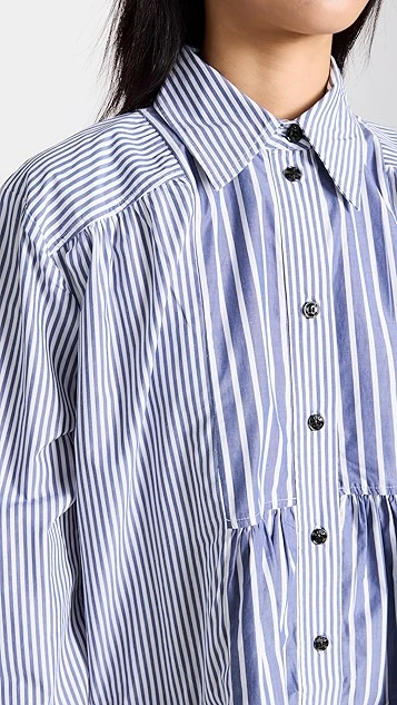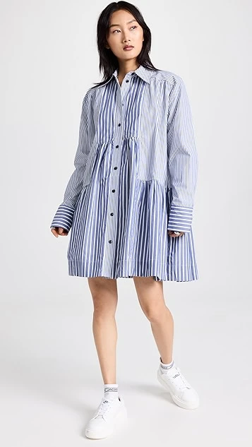 Mixed-stripe shirting composes this unique GANNI mini dress, which gains a cool and contemporary look from an exaggerated babydoll silhouette. To round out your look, just add white sneakers.