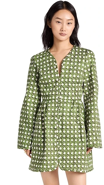 - Curved split neckline and hem
