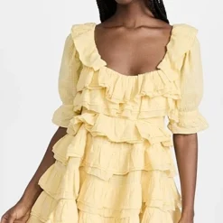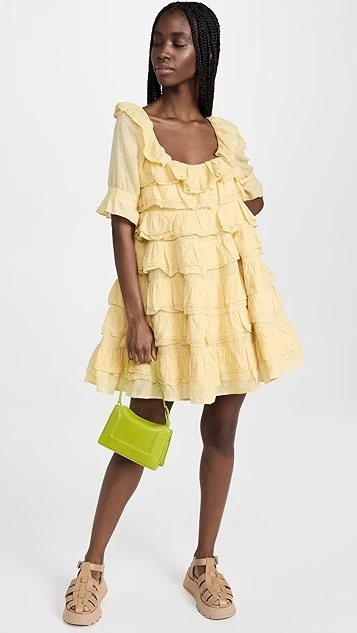 - Short sleeves with ruffle cuffs
