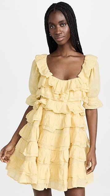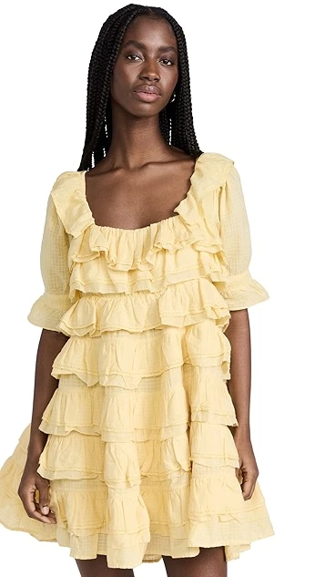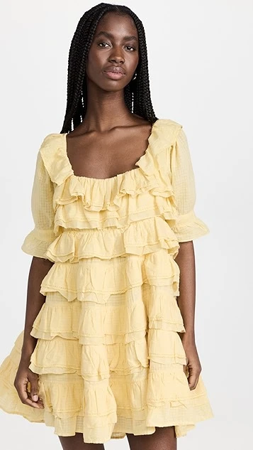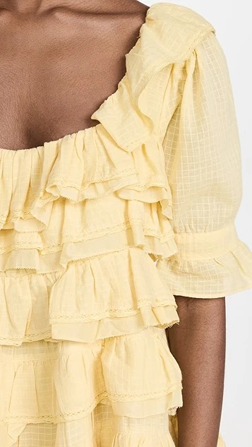 - Tired ruffle trim with crochet lace edges