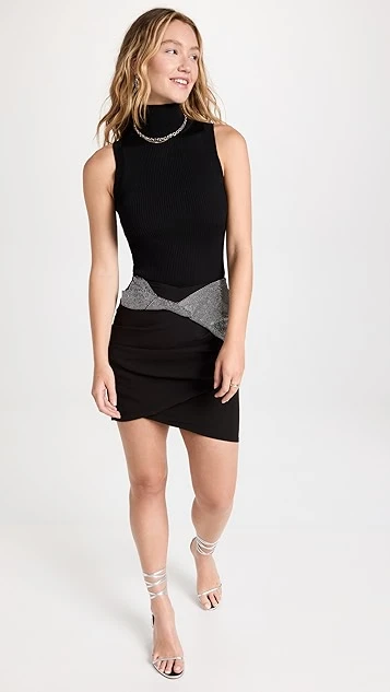 - Faux wrap design with pleated side seams