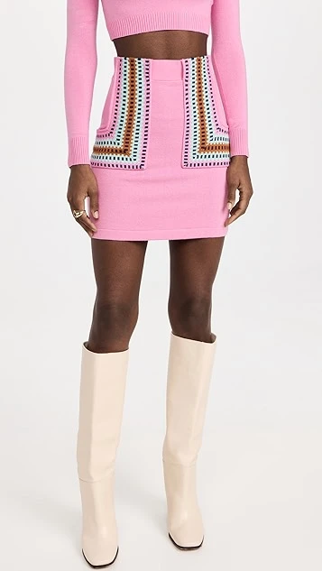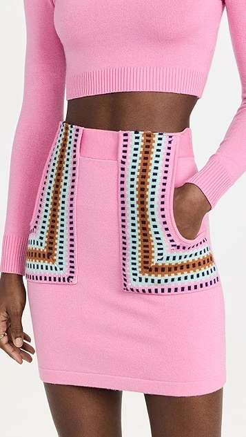 - Patch hip pockets with geometric stripe pattern.