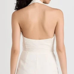 Alice + Olivia Kyrie Faux Leather Notch Collar Tuxedo Romper