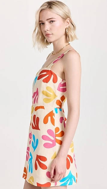 A charming geometric print in a fun mix of colors details this KITRI sheath dress, which is crafted from a crisp, lightweight linen blend.