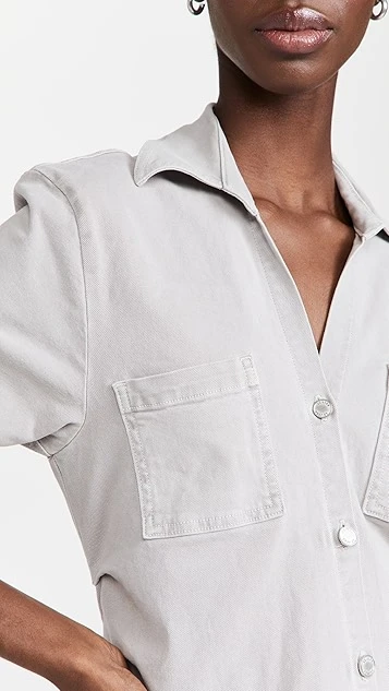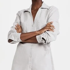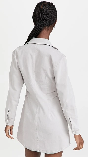 A simple Le Jean dress with a utilitarian look and light-grey fabric. To complete your outfit all you’ll need is a new favorite pair of sneakers.